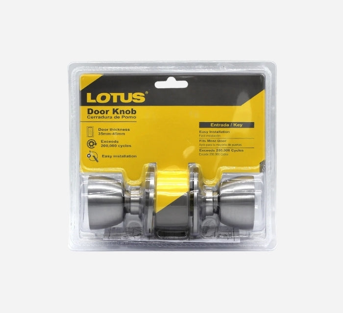 Upgrade your door security with the modern and reliable LOTUS CYLINDRICAL KNOBSET (CL588/ET-US32D). Designed for Entrance (ET) functionality, this knobset features key access from the exterior and a turn-button lock on the interior. The contemporary style is enhanced by a sleek Satin Stainless Steel (US32D) finish, offering excellent resistance to corrosion and wear. Built with durable internals, the CL588/ET-US32D provides secure and smooth operation for residential and light commercial applications.