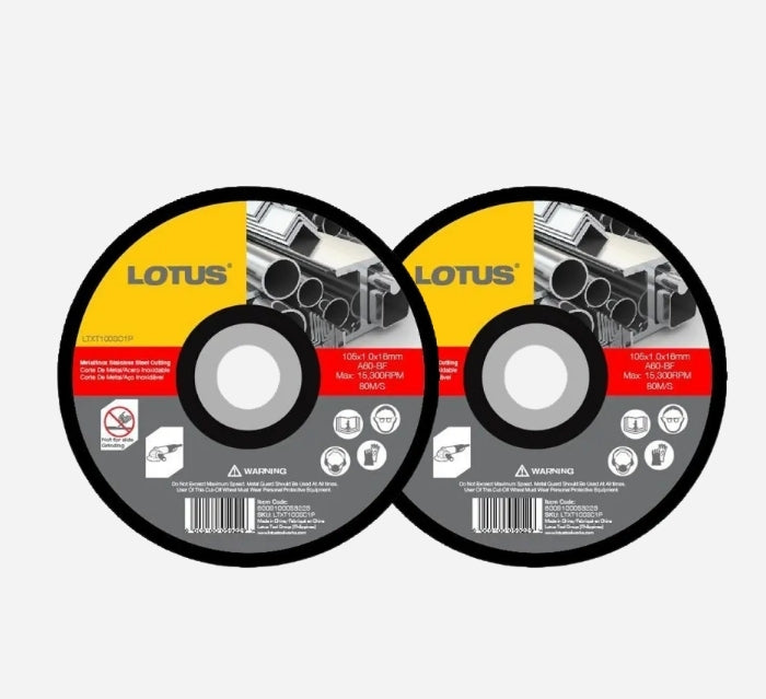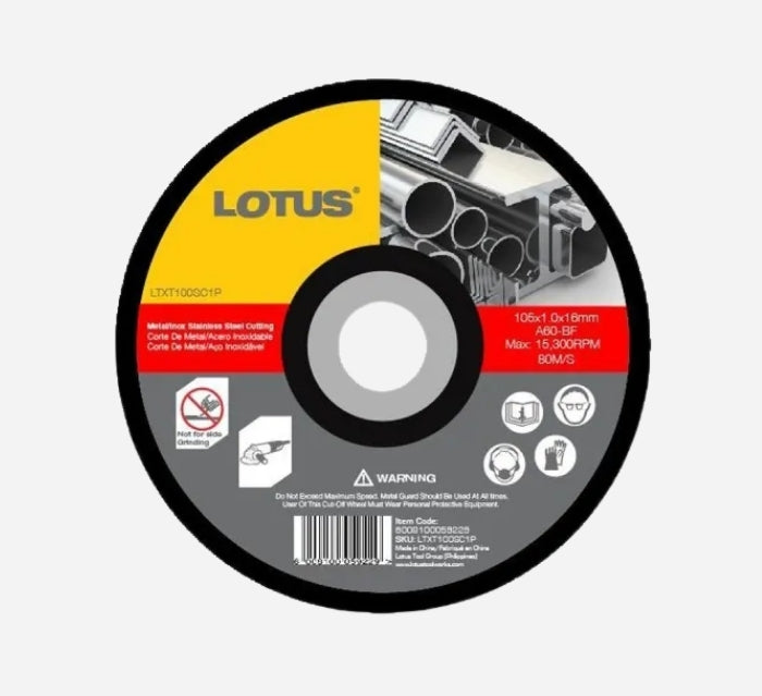 Achieve fast, precise, and consistent metal cutting with the LOTUS 14" CUT-OFF WHEEL (LTXT355SC1P). This universal cutting disc is specifically engineered for use with 14-inch chop saws to efficiently slice through metal sheets, pipes, rods, and solid materials. Constructed with tough aluminum oxide abrasive that is continuously exposed to maintain an aggressive cutting edge, the disc is fully reinforced with fiberglass mesh for added safety and performance under heavy load. The 3.0 mm thickness (Note: some thinner variants exist, but 3.0mm is standard for universal cutting) ensures durability for industrial applications.